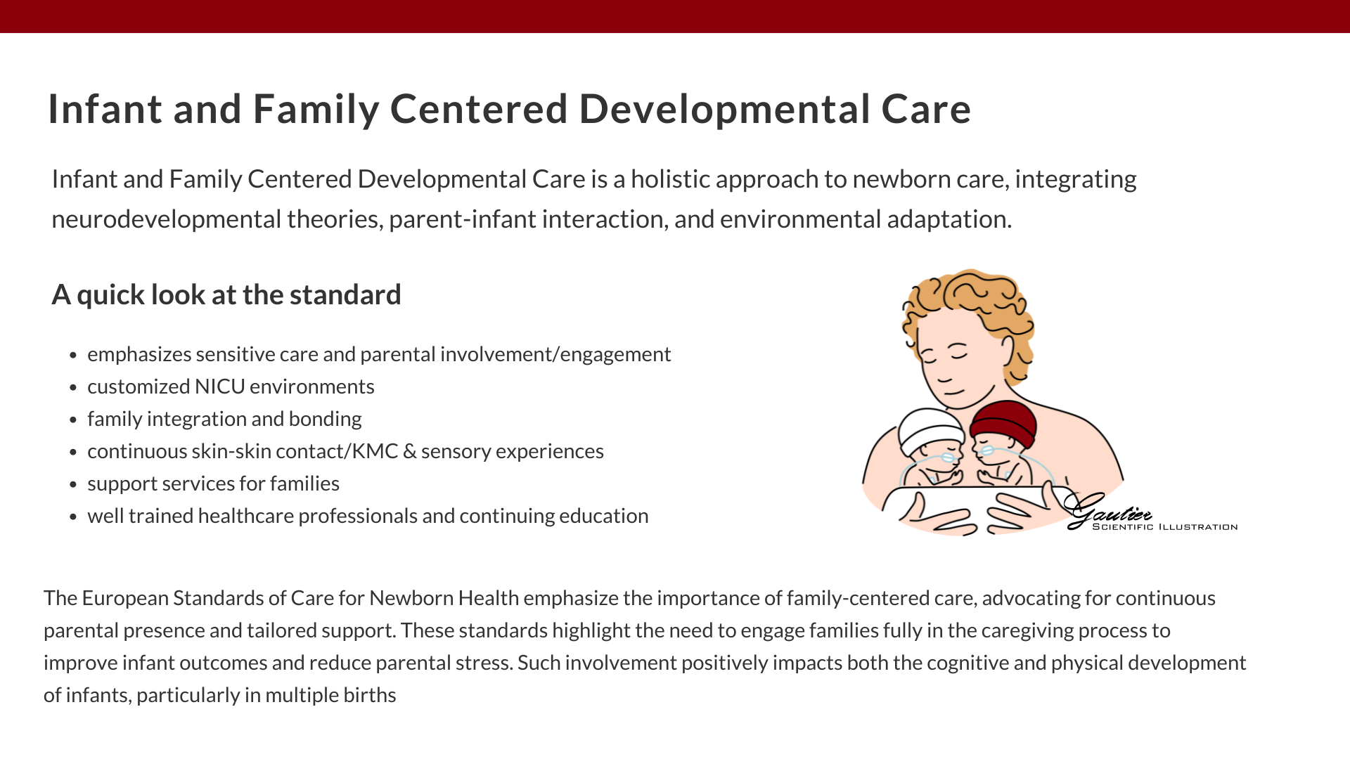 So, what can be done? While the ESCNH doesn’t yet include specific standards for multiples, we believe that several of the existing guidelines could still make a big difference. Two areas in particular stand out: Infant- and family-centered developmental care, and Follow-up and continuing care.